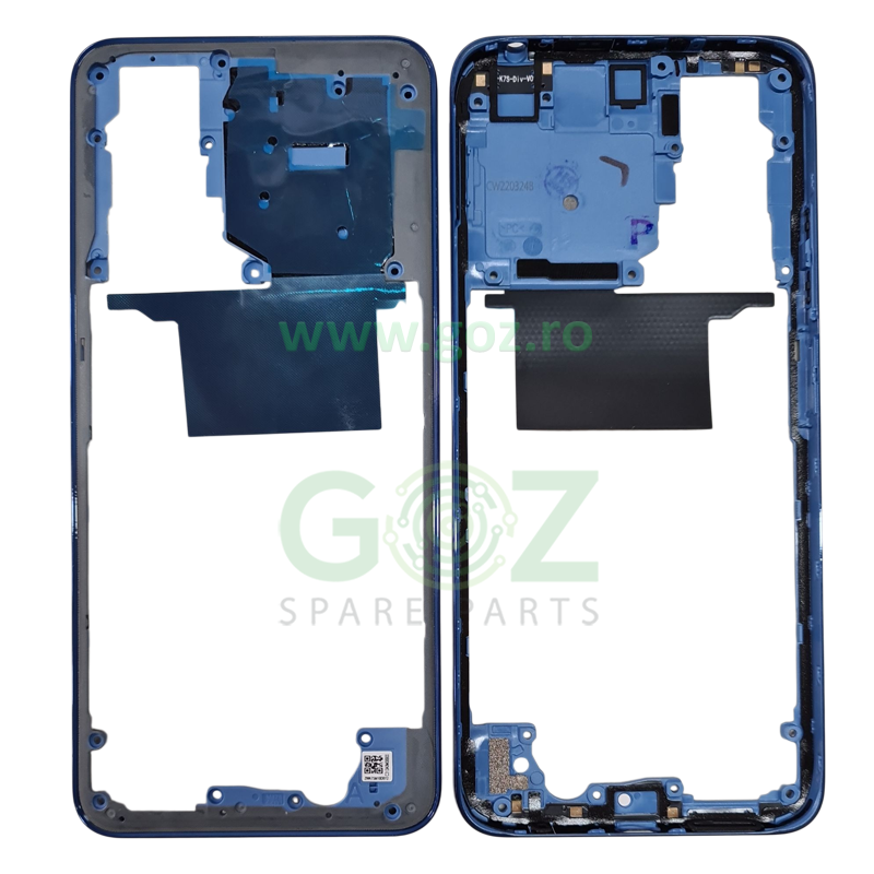Ramă mijloc originală Service Pack pentru Xiaomi Redmi Note 11 4G (Middle Frame / Chassis / Bezel). Piesa este nouă, originală și de culoare albastră (Blue Frame). Este destinată reparațiilor structurale sau înlocuirii unei rame deteriorate, deformate sau uzate.